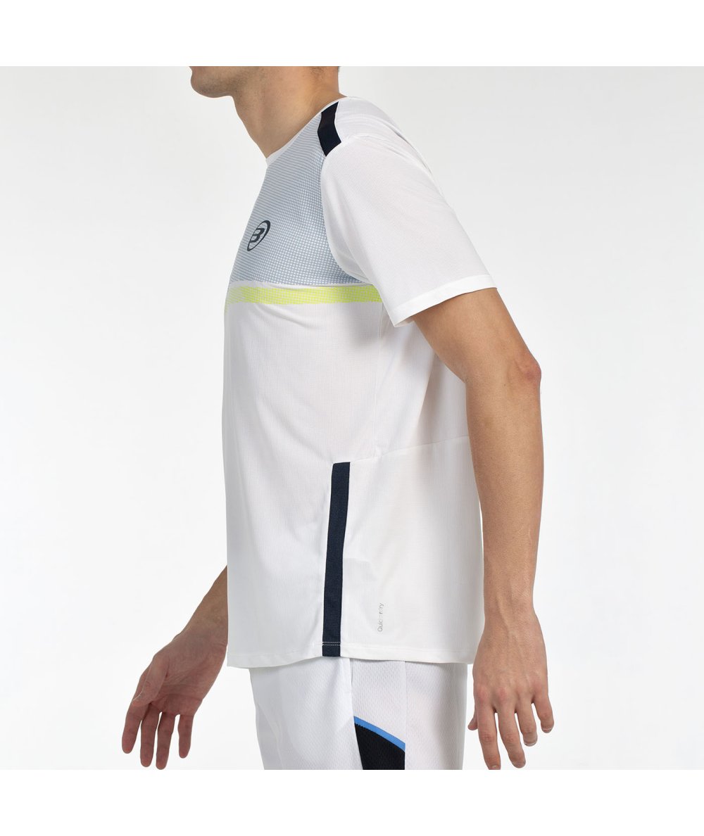 Lightweight Jacquard invigorating tech t-shirt with an attractive design using contrasting pieces and a small print on the chest. -Made with ultra-light polyester fabric, giving the garment comfort and functionality. - Quickerdry finish is applied, technology that uses microfilaments to reduce humidity and help with perspiration.